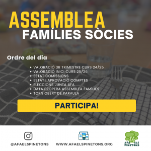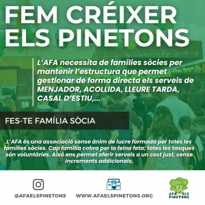 Informació d’interès per a les famílies usuàries del servei d’acollida, menjador i activitats extraescolars.